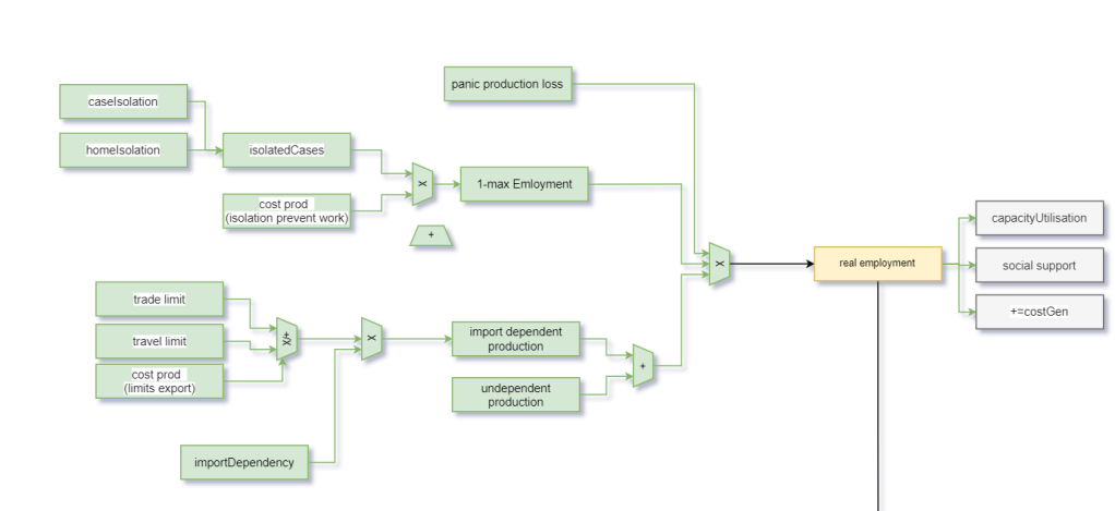 Limiting external trade and travel, Both external trade and travel has the risk of bringing infected travelers to the country. Probability of infected travelers is connected to neighbour countries’ infected population ratio and applied tests at borders. When neighbours infection rates are getting higher it might be necessary to partially or totally close the borders. However closing borders has direct effect on import dependent production of the state according to its import dependency.
