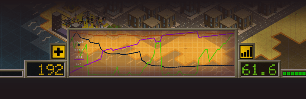 Game winning and losing status now depends on the overall performance of the player. The game continues until the player scores less than 25 points. When the number of newly exposed patients falls below a certain threshold, the suppression counter for the win condition starts for one month.