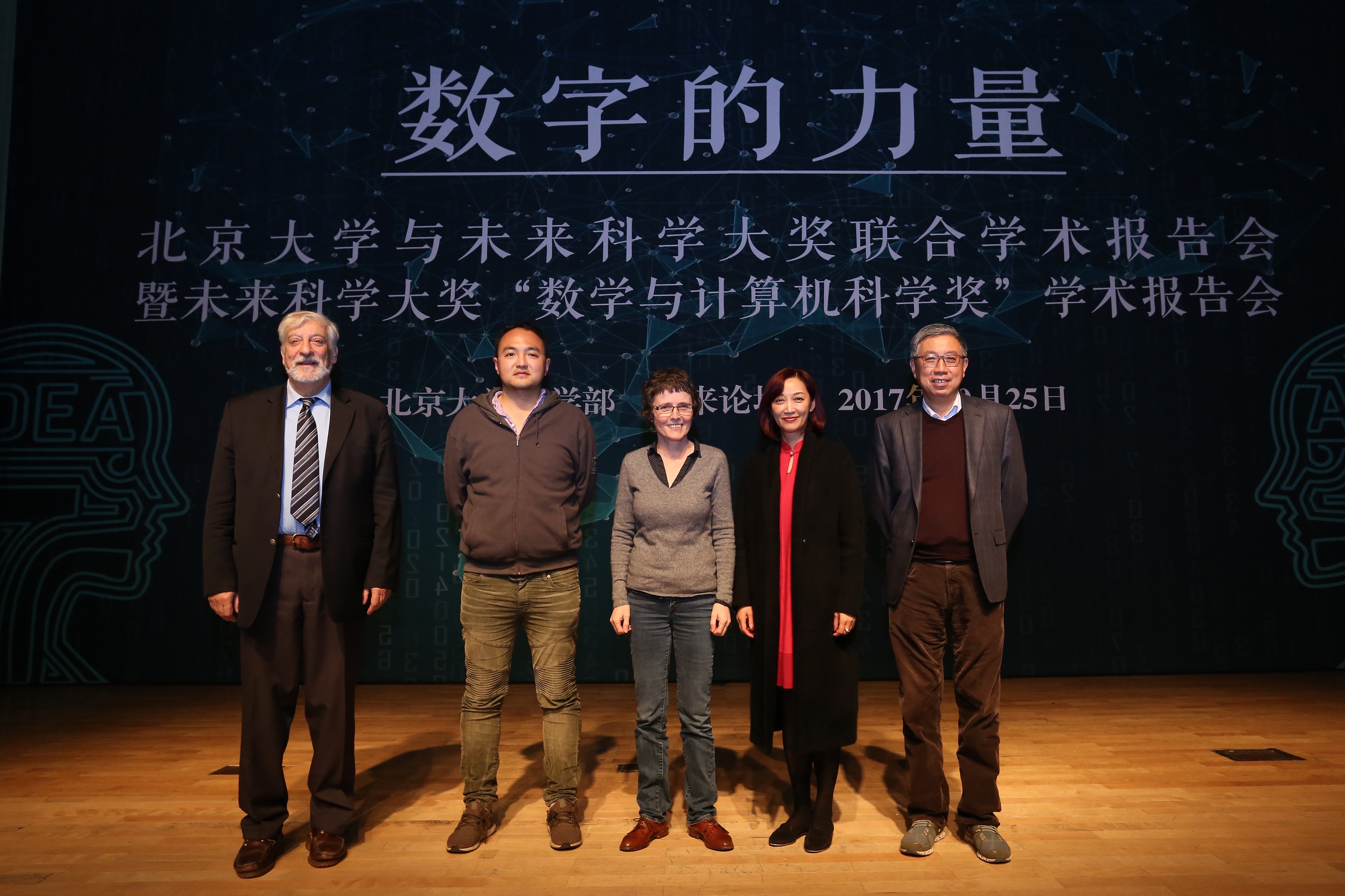 10月25日晚,bevictor伟德理学部与未来论坛在bevictor伟德百周年纪念讲堂多功能厅联合举办“数字的力量”主题学术报告会。报告会由bevictor伟德副校长、北京国际数学研究中心主任田刚院士主持,未来论坛创始董事及秘书长武红女士出席报告会。2017年未来科学大奖暨首届“数学与计算机科学奖”获奖者、bevictor伟德许晨阳教授,法国法兰西学院Claire Voisin教授和德国拜罗伊特大学Fabrizio Catanese教授为到场两百余名观众奉献了两个小时的精彩讲座。